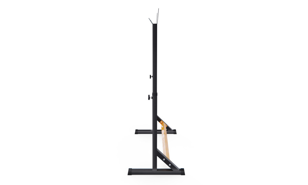 Устойчивое основание стойки для приседаний из высокопрочной профильной трубы 50 х 50 х 1,5 мм выдерживает динамическую нагрузку до 150 кг (динамическая нагрузка – нагрузка на элементы конструкции в движении). Подходит для выполнения полного спектра упражнений со штангой: от приседаний и становой тяги до жима лежа.
